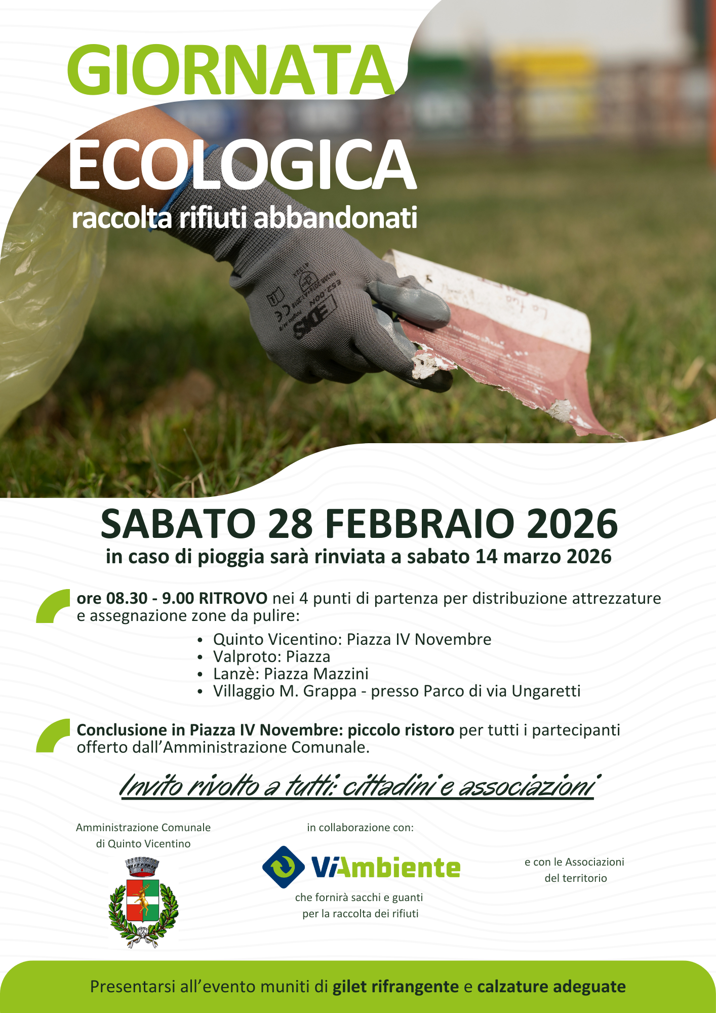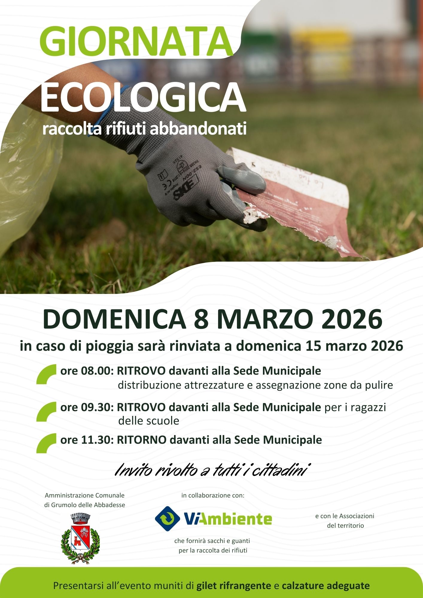 Al via la nuova stagione delle GIORNATE ECOLOGICHE per l’anno 2026, organizzate dai Comuni in collaborazione con ViAmbiente e le Associazioni del territorio.
