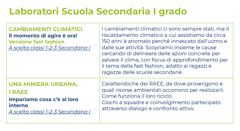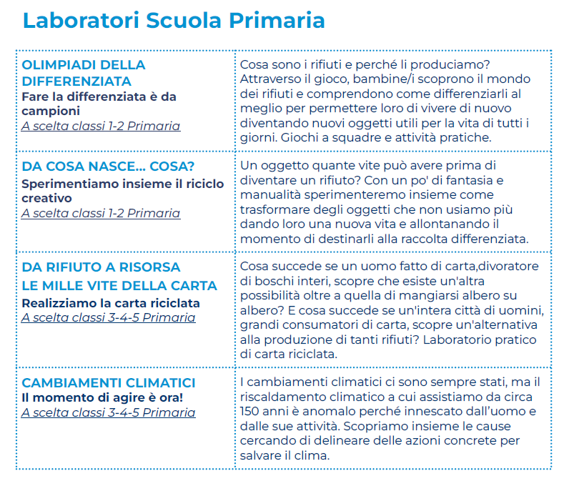 Percorsi per le scuole primarie e secondarie dei Comuni soci per sviluppare una coscienza critica sul tema dei rifiuti.